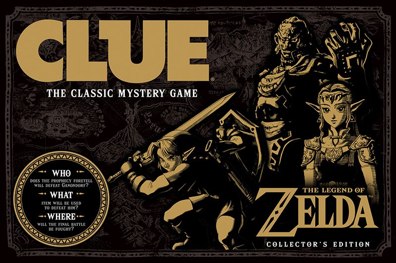 In The Legend of Zelda Clue Collector's Edition, the Dark Lord Ganondorf has stolen the Triforce and is threatening Hyrule with his evil plans to rule the world! In order to fulfill the prophecy and defeat Ganondorf, you must find out WHO possesses the power to defeat Ganondorf, WHAT item is required to defeat him, and WHERE he has established his hidden lair. - Additional Information