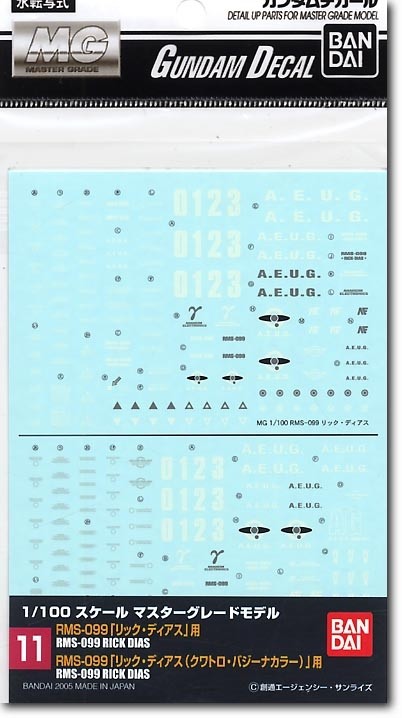 GD-11 MG Rick Dias Decal "Z Gundam", Bandai Hobby Decal (Gundam Model Decal) - Additional Information