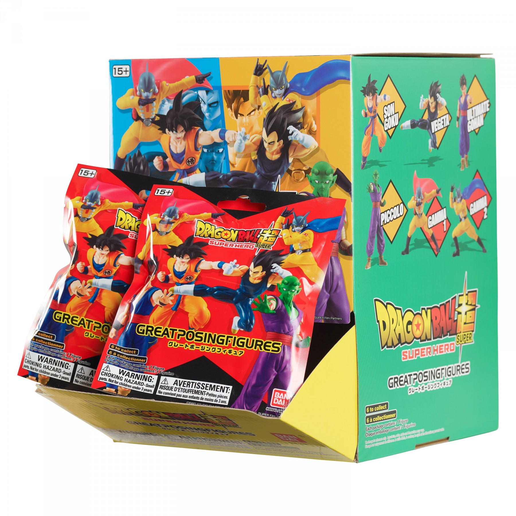Dragon Ball Super: Super Hero movie – Great Posing Blind Packs are the perfect addition for any Dragon Ball fan’s collection. From the Gashapon ‘Great Posing Figure’ series in Japan, this collection features 6 characters from the iconic movie, and each comes with a mini foot stand to keep your display intact . Each figure measures approximately 3.5 inches. The characters are sculpted with precision details to look exactly like the characters in the popular anime movie, Dragon Ball Super: Super Hero. This set includes Son Goku, Vegeta, Son Gohan, Piccolo, Gamma 1, Gamma 2.